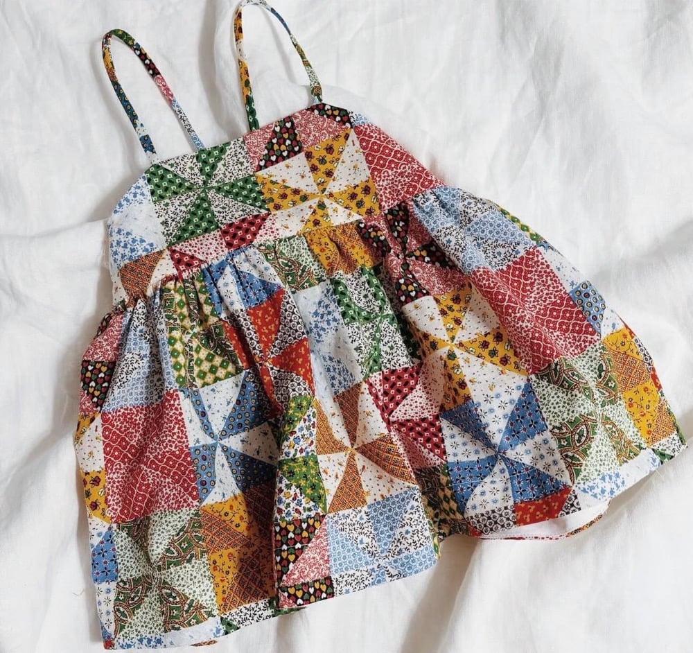 Wolfechild Sample: meadow top size 6/7 years. made from vintage patchwork print cotton. The back is super stretchy elastic. Originally $62 asking $34 plus shipping and sales tax