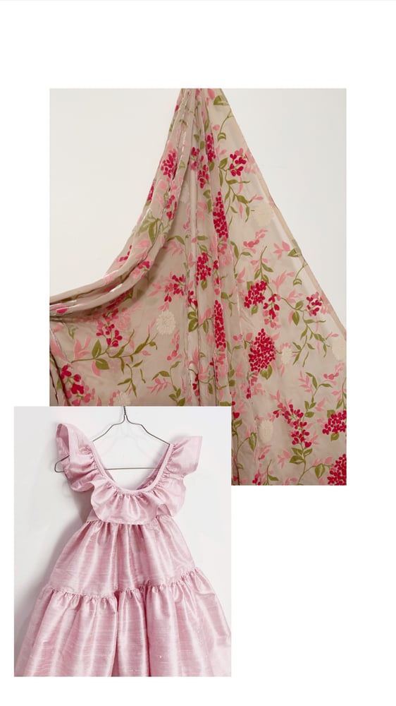 Ruffle neck meadow dress -floral silk burnout fabric with underlay